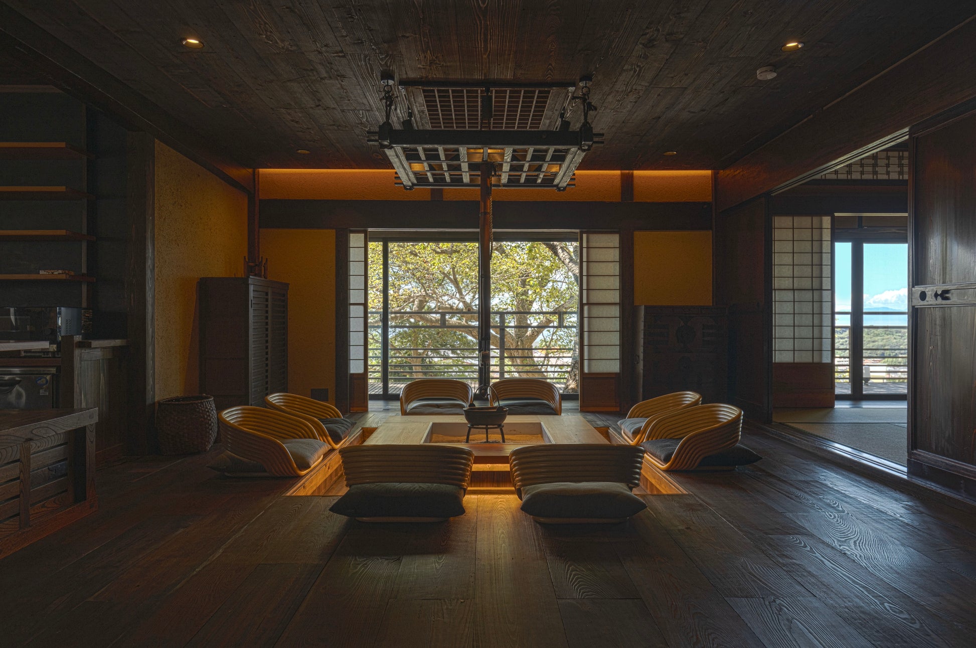 離れの「日本風ロッジ 沖長庵(Okinaga-an)」 では、武士の精神を受け継ぐ伝統的な侍の朝餉を。茶を嗜み、語らいを重ねる──心のゆとりまでも設計された滞在体験です。